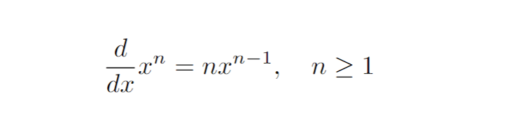 You might have learned a couple ways for proving this formula. One is to directly apply the definition of the derivative, making use of the binomial formula and the limit techniques. An easier way, for integral powers excluding -1, is to simply use induction on n. We know that the derivative of x is 1 from the definition.