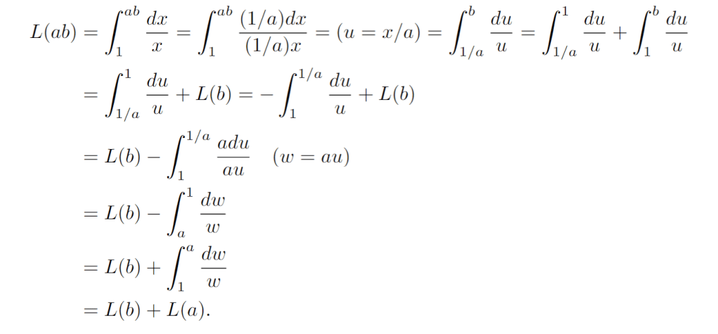 Is is now clear that this function, which is continuous and satisfies the above properties, must be the natural logarithm!